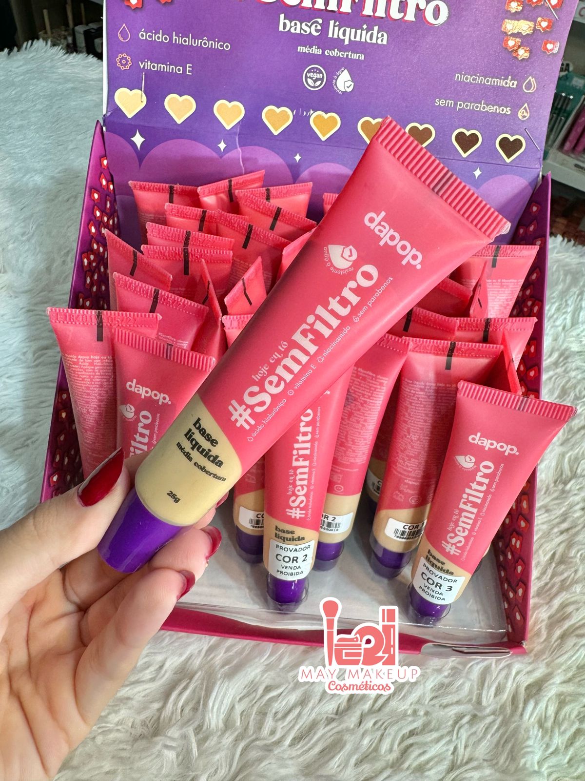 Sua fórmula de alta qualidade promove uma aplicação suave e uniforme, garantindo uma aparência profissional. Com propriedades de longa duração, essa base proporciona um aspecto natural e radiante ao rosto, sem obstruir os poros. Ideal para quem busca uma cobertura confiável e sem falhas, a base líquida #semfiltro da Dapop é um essencial para qualquer necessaire de maquiagem.