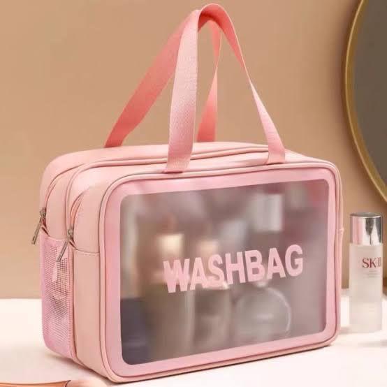 Necessaire transparente Washbag, cabe muita make, super resistente e impermeável disponível em preto, azul e rosa 💗