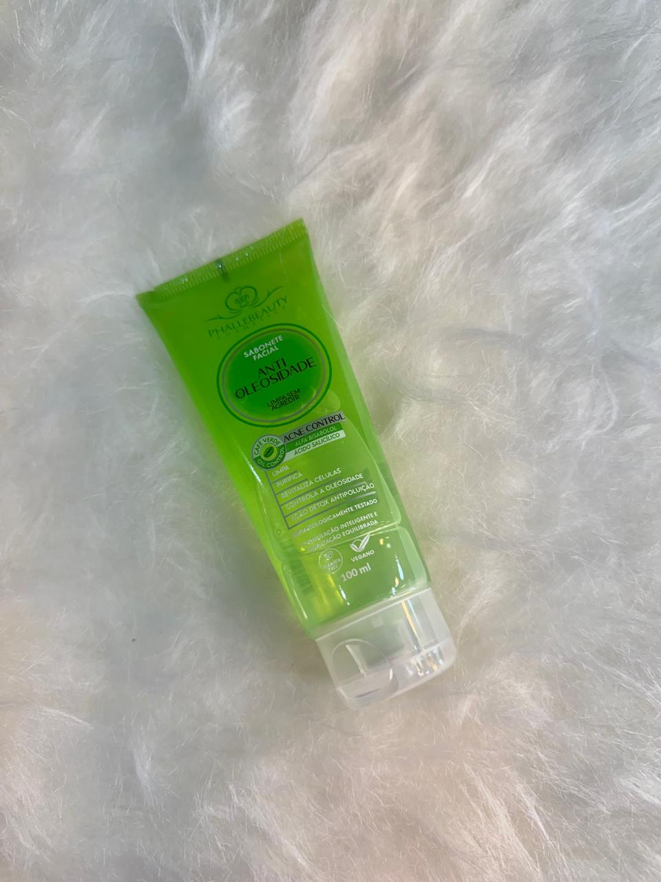 Sabonete facial para peles oleosas. Phállebeauty Acne Control Anti Oleosidade limpa suavemente, possui ação detox antipoluição e combate a acne.